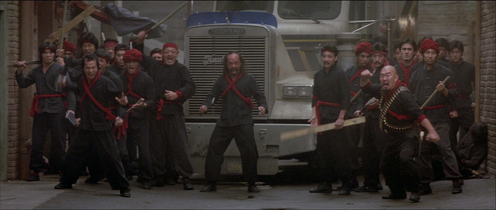 In general, I love the Art Direction of the film and would love to walk through some of the iconic sets from David Lo Pan’s underground kingdom, but there’s a transitional moment that I clocked even as a kid and it’s the sequence I would want to be on set for. It’s when Jack in his truck is chasing the thugs who kidnap Mioa Yin at the airport. Wang shouts at him to turn down a tight alley, and it’s here were the film leaves real locations behind and enters an exterior set where the first large martial arts battle takes place. Among them is the familiar face of 80s legend Al Leong (Die Hard, Lethal Weapon). I’m curious to know the day-to-day of this sequence, not just the fight choreography but the decision to have Kurt stay in the truck and watch everything, the introduction of The Three Storms, and the idea of the signs that fold in as Jack’s truck moves into the tight alley.