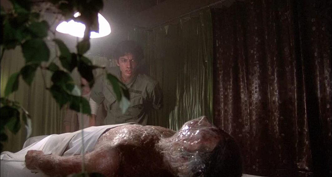 The film is cast with actors who enjoy an oddball acting style: Donald Sutherland, Jeff Goldblum, Leonard Nimoy and Veronica Cartwright have a natural eccentricity, and Kaufman uses it to play around with wondering if they’re still them or if they’ve been taken. Then for contrast, he casts the bland Brooke Adams in the lead and is able to make her lack of personality a plus too, having it both ways.